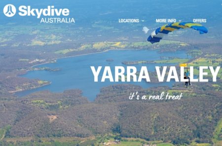 “Skydiving the Yarra Valley is the ultimate adrenalin rush. Tandem skydiving from up to 15,000 feet, you'll experience an insane 60 seconds of life-changing freefall. Float under canopy for 5-7 minutes over the lush Yarra Valley countryside, quilted with rolling pastures, vineyards, dairy stations, organic farms, hedge mazes and wildlife sanctuaries.”