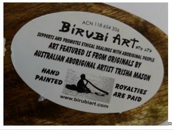 The message stones are not as recognisable Australian Aboriginal Cultural objects, did not convey the same impression, and the label simply states: “ABORIGINAL ART” and “HAND PAINTED”.