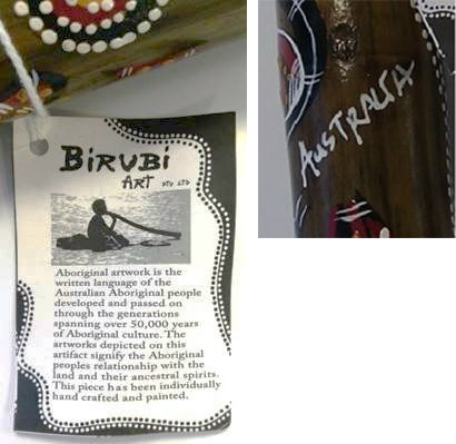 The bamboo didgeridoo souvenir and its labelling conveyed the same impression as the loose boomerangs. In addition: