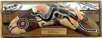 Birubi Art labelled the artefacts and their boxes as “genuine Aboriginal Art”, “100% hand painted”, “handcrafted Australian Boomerang” and “Royalties are paid”.
