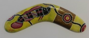 Boomerangs are traditional Australian Aboriginal Cultural objects which are sold as souvenirs to tourists. So too are bullroarers and didgeridoos.